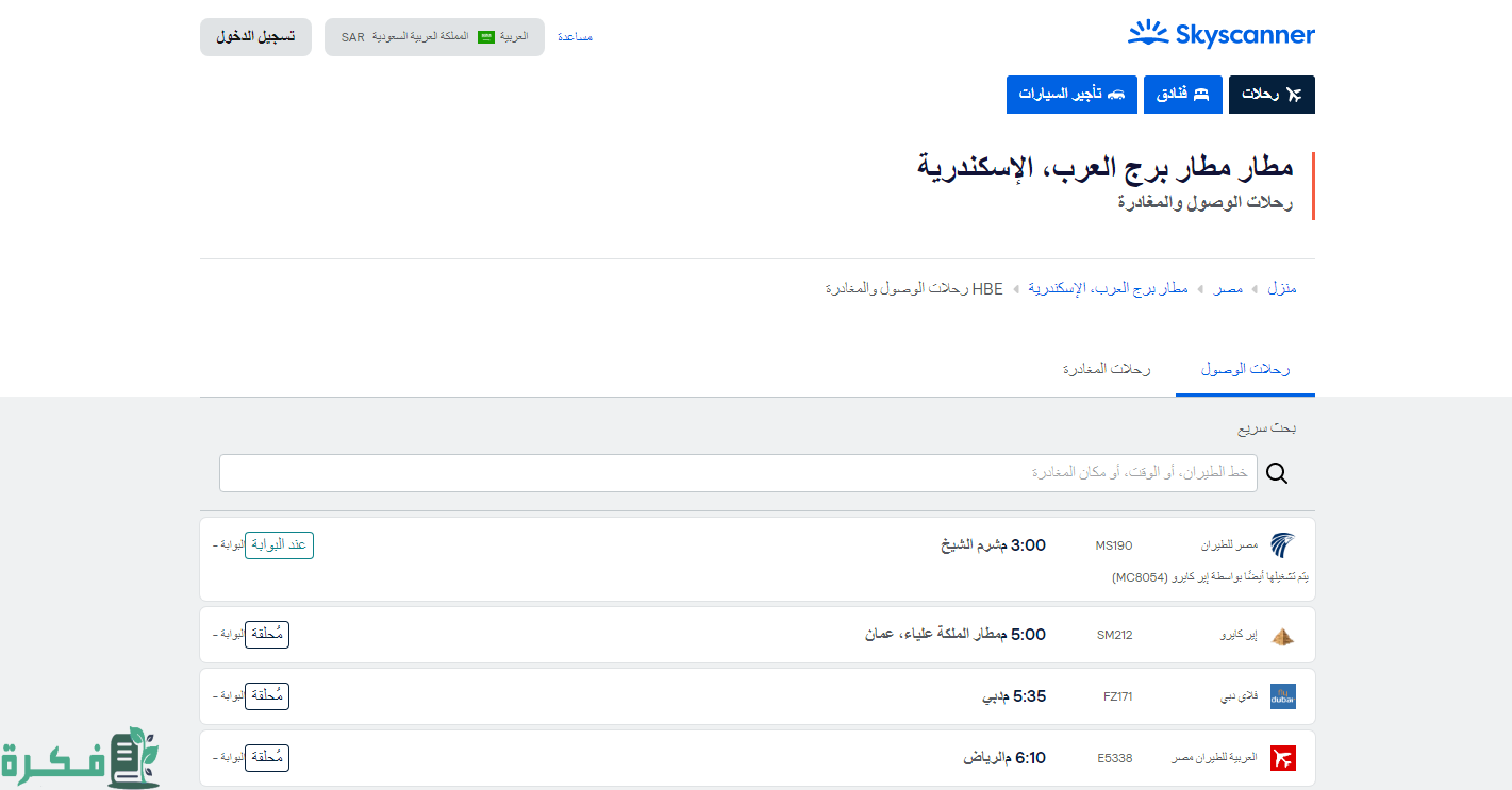 أولًا: الرحلات القادمة إلى مطار برج العرب