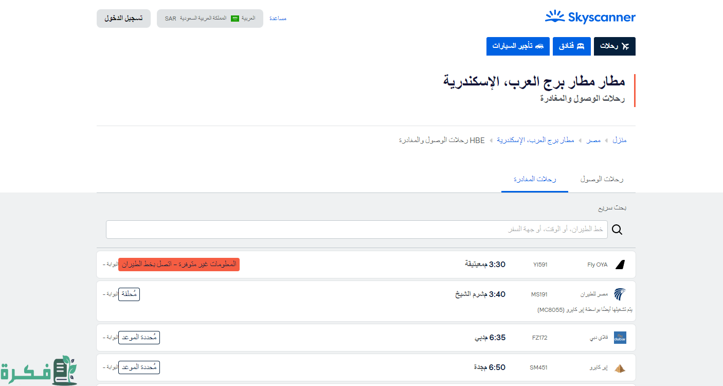 - فتح جدول مواعيد ومعرفة وقت مغادرة الطائرات بمطار برج العرب اليوم.