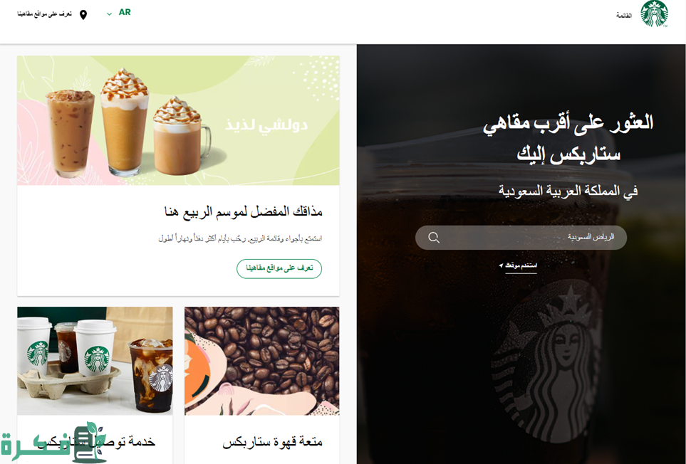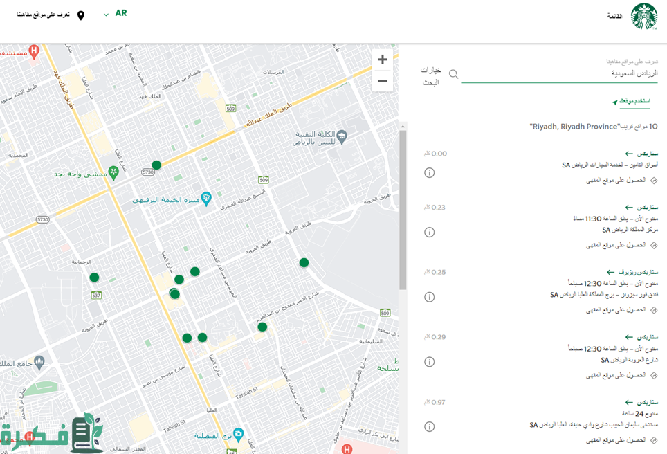 1. الدخول إلى الموقع الرسمي لشركة ستاربكس للعثور على أقرب فروع المقاهي في السعودية، وذلك بالنقر هنـــــــــــــــــا.