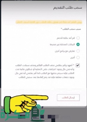 - الأن أمامك تفاصيل الطلب الخاص بك الذي تم رفضه من قِبل الوزارة، اضغط على “سحب الطلب”.
