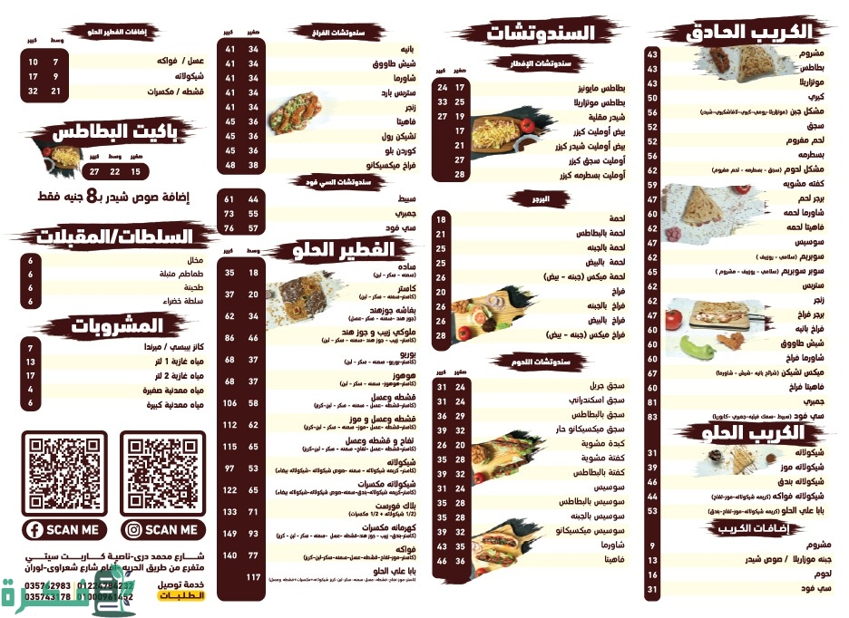 - يتوفر في المحل مختلف أنواع الفطائر والبيتزا بالإضافة الى الكريب والمقبلات التي ترغب بها.