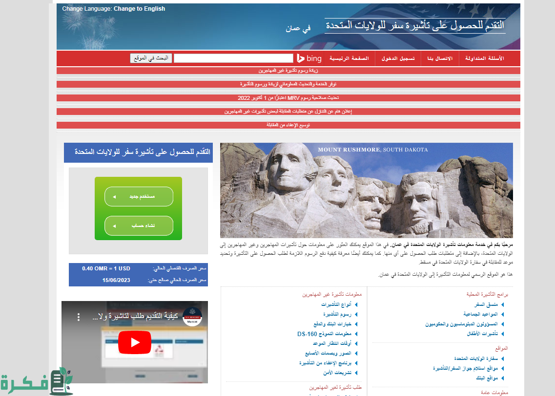 1. الدخول إلى الموقع الإلكتروني للسفارة الأمريكية في عمان من هنـــــــا.