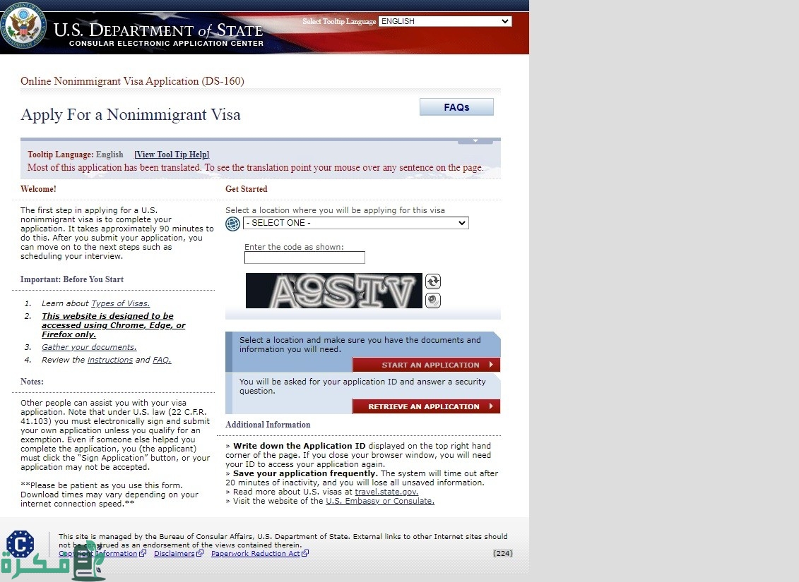 3. اختار نموذج DS-160، لكي تقوم بتعبئته.