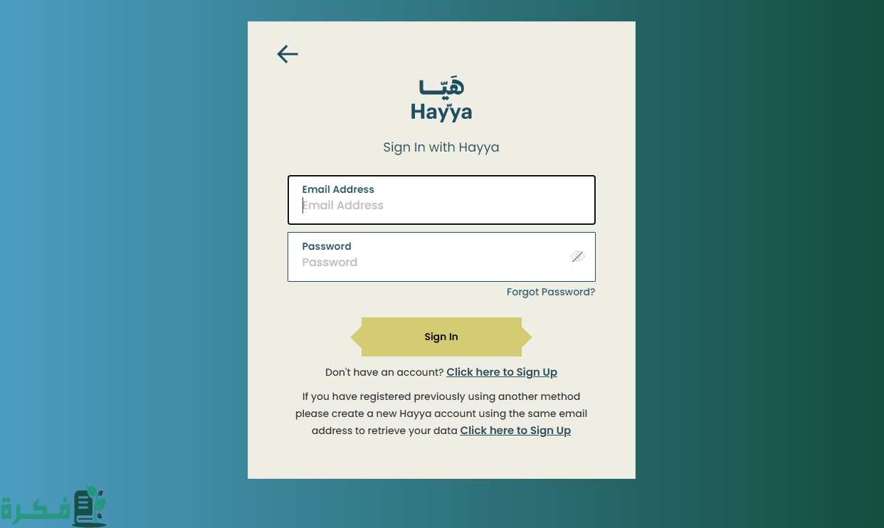 - سجل بيانات حسابك للدخول من بريد إلكتروني ورقم مرور.